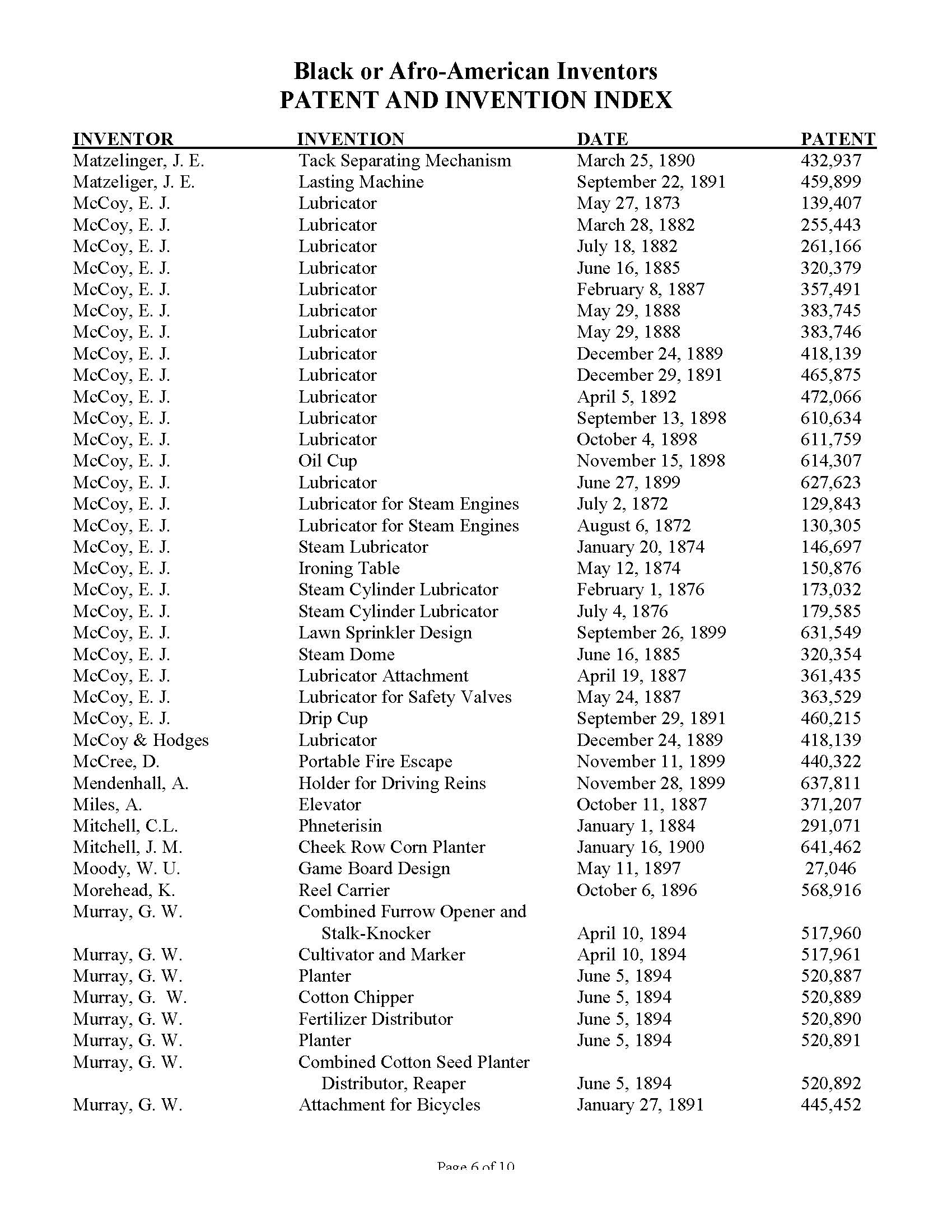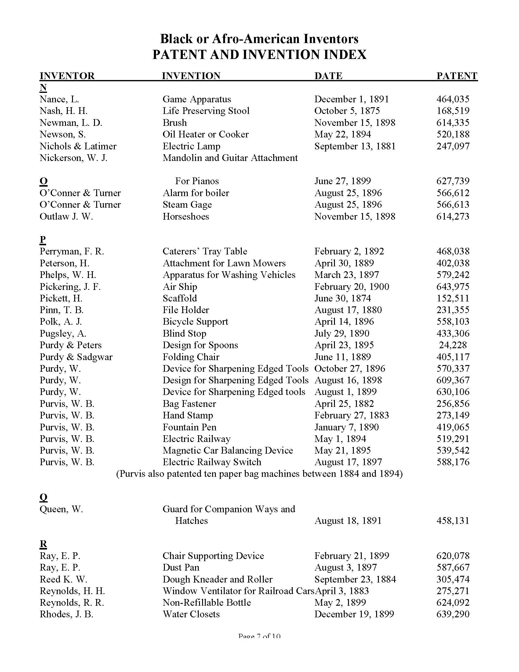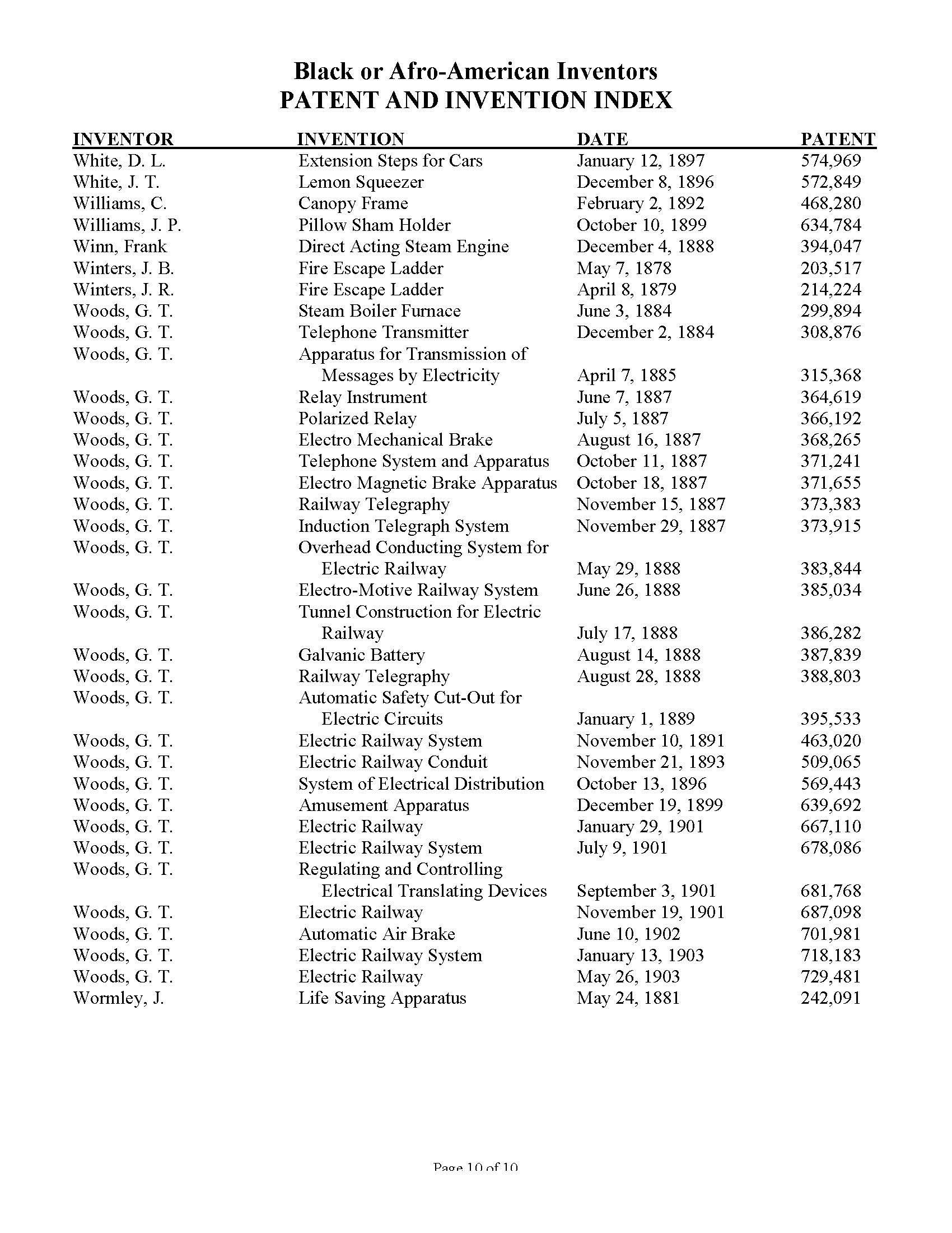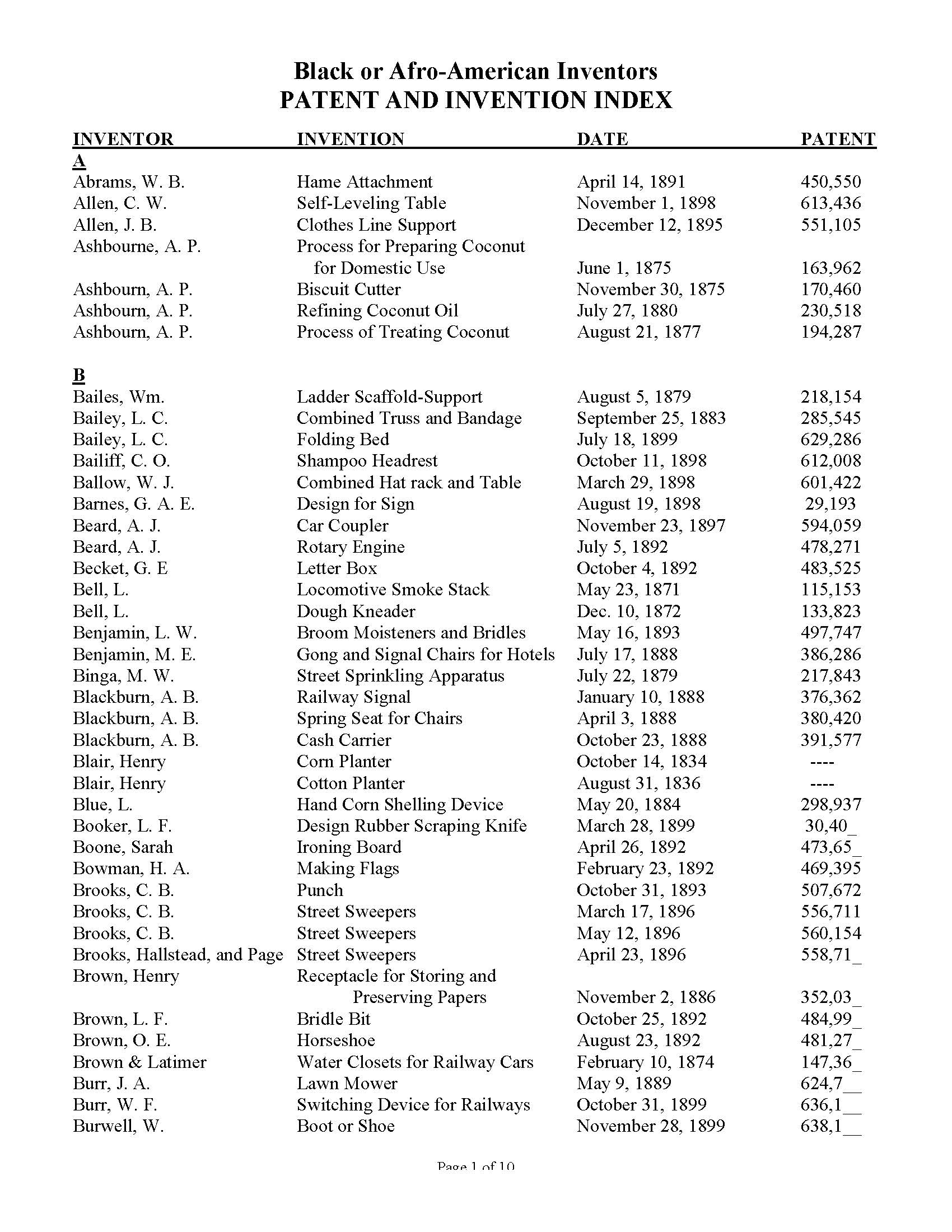 Black Inventors Patent and Invention Index