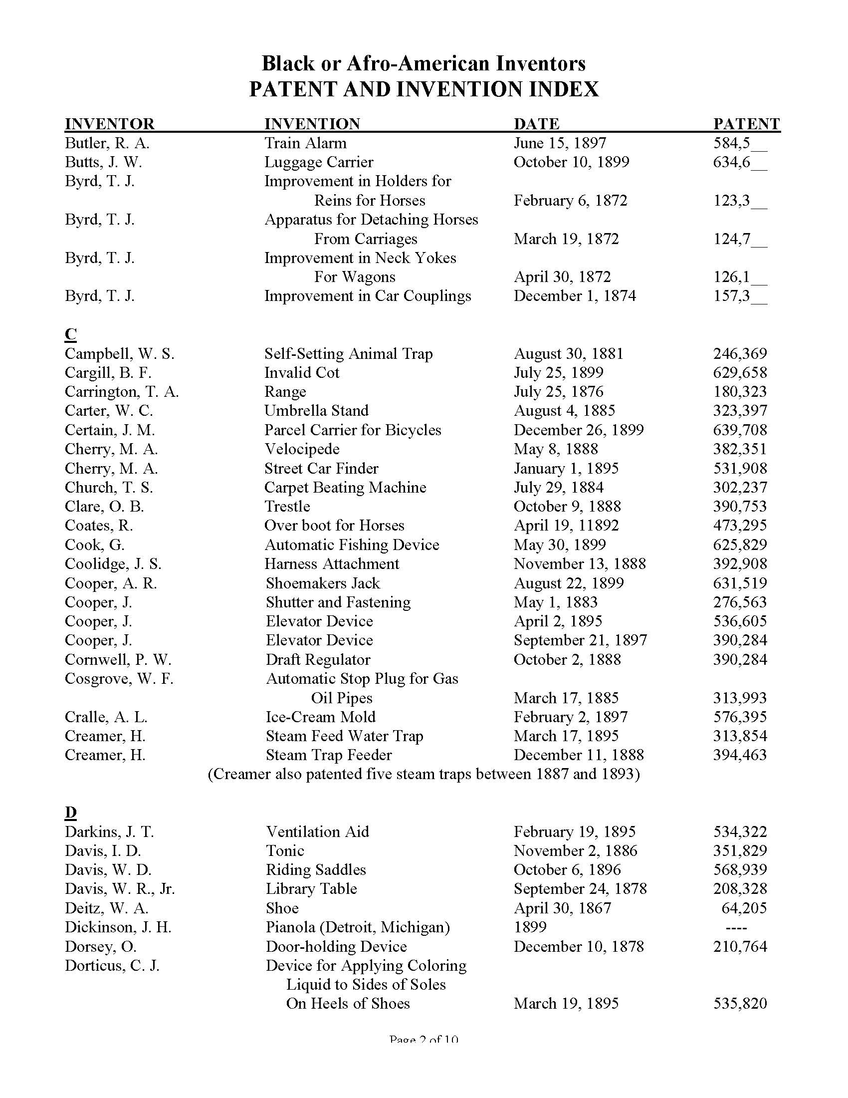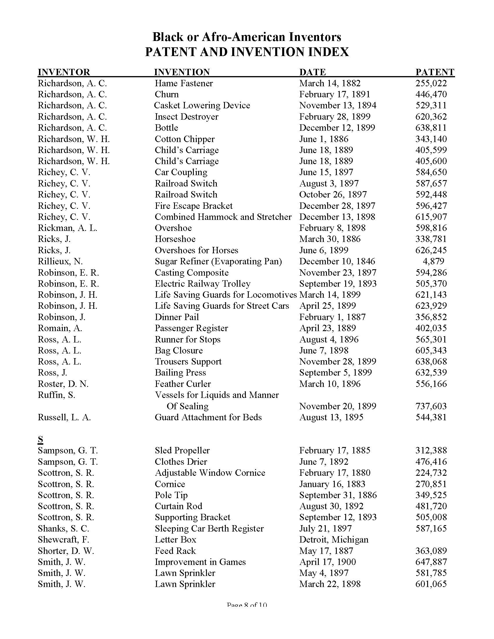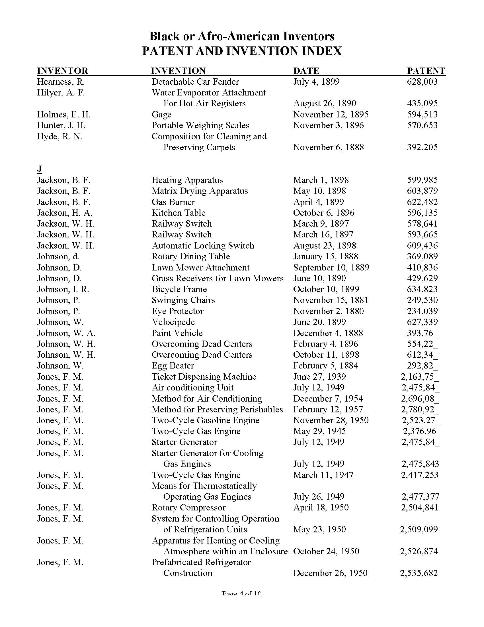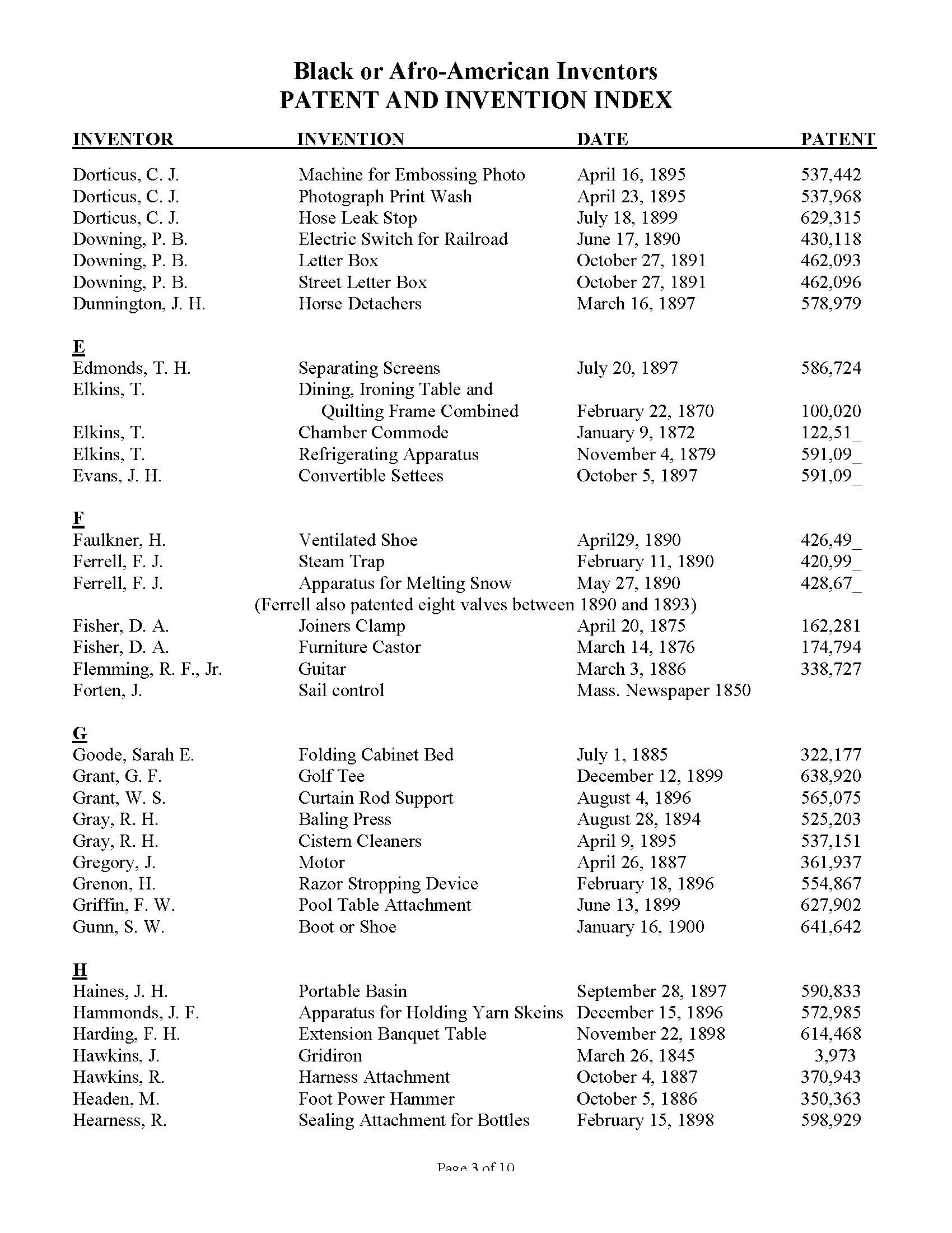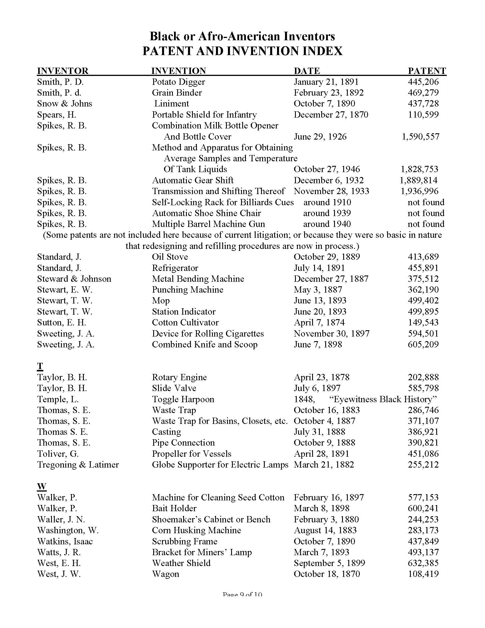 Black Inventors Patent and Invention Index
